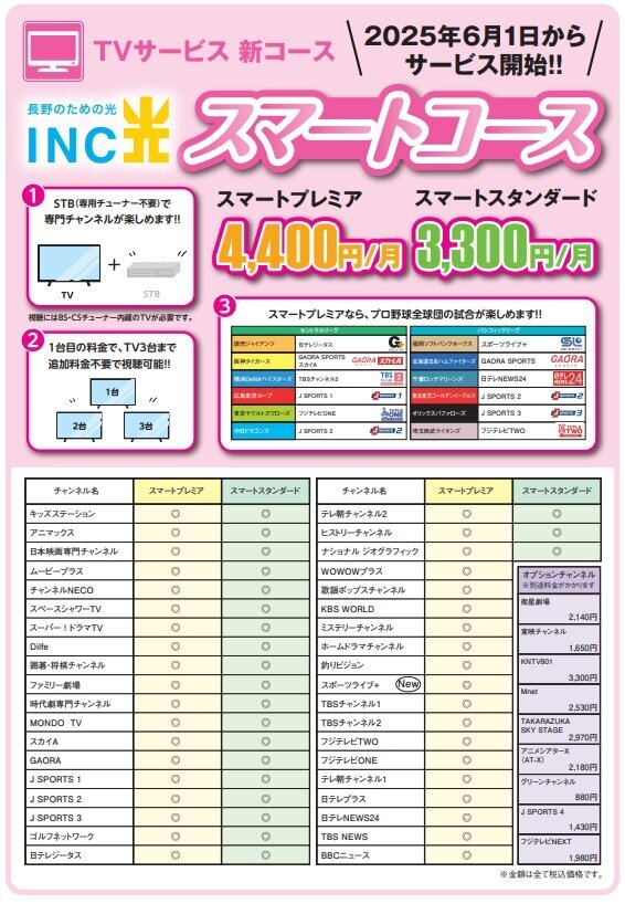 料金、チャンネルラインアップは下記ページをご確認ください。