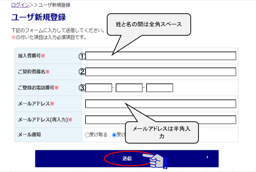 (4) 新規登録フォームに必須項目を入力します