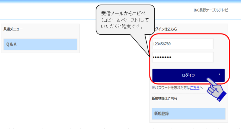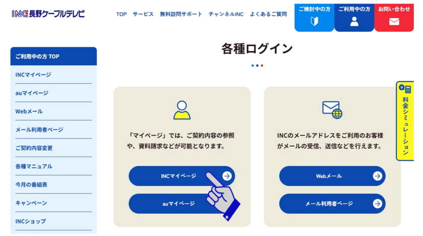 (4) INCマイページにログインします。