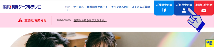 画面上部にある「ご利用中の方」をクリック